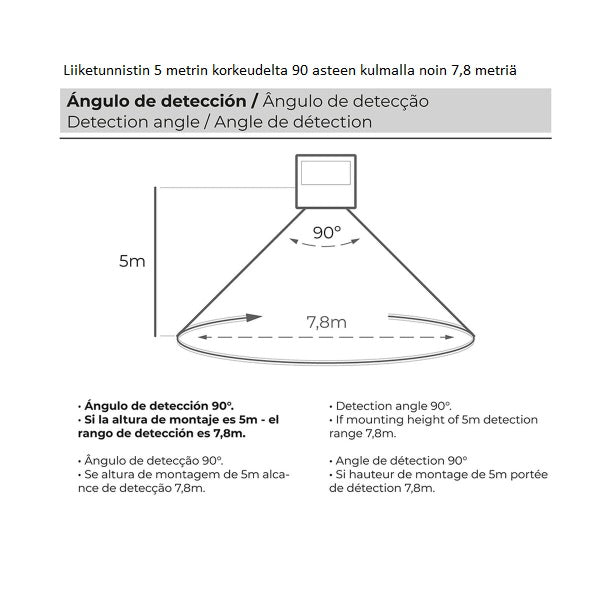 Valaistusala: valaisee noin 12 m² alueen.